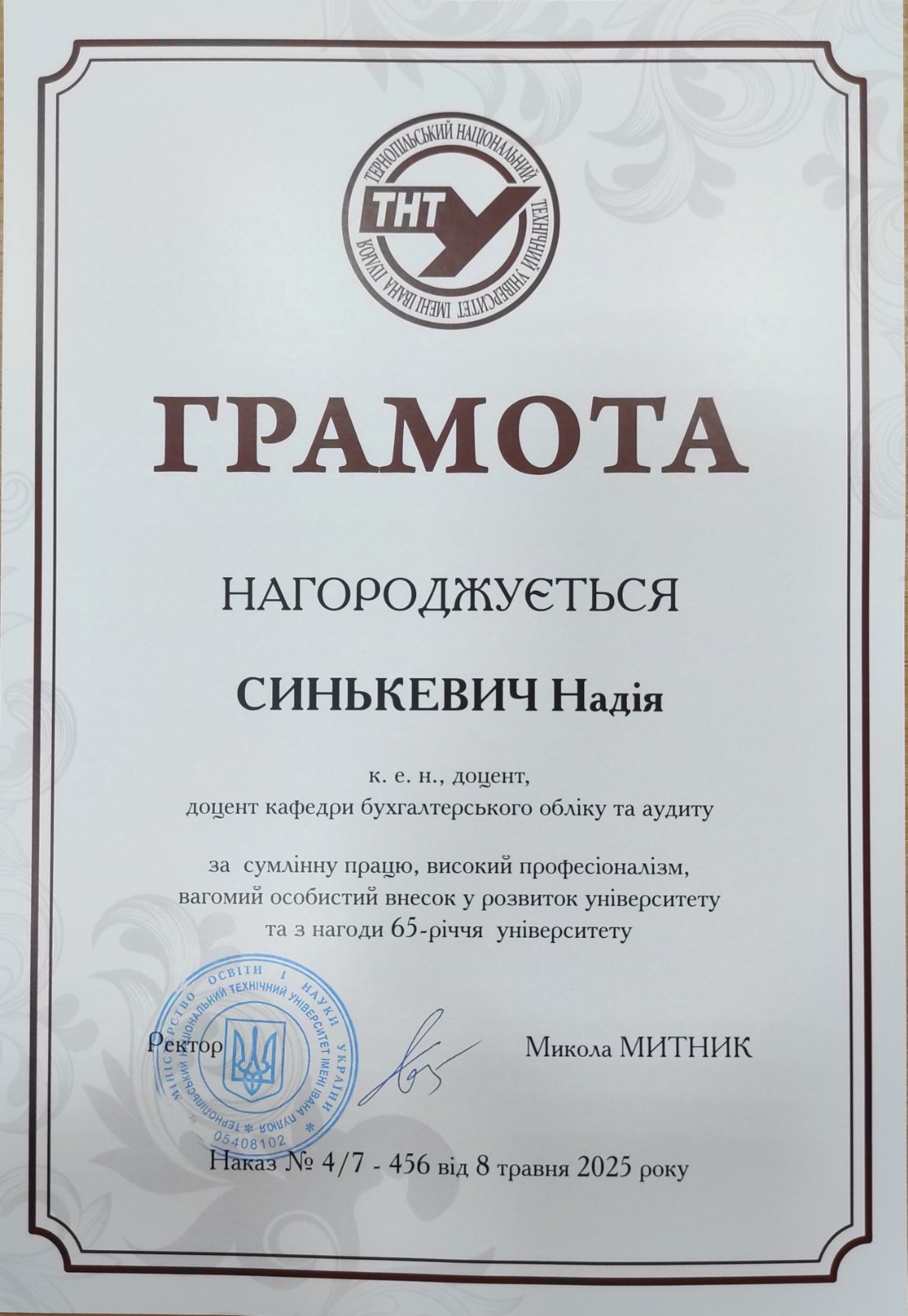 Із великою гордістю вітаємо колег кафедри бухгалтерського обліку та аудиту з високими відзнаками за вагомі досягнення в науковій, освітній і педагогічній діяльності: