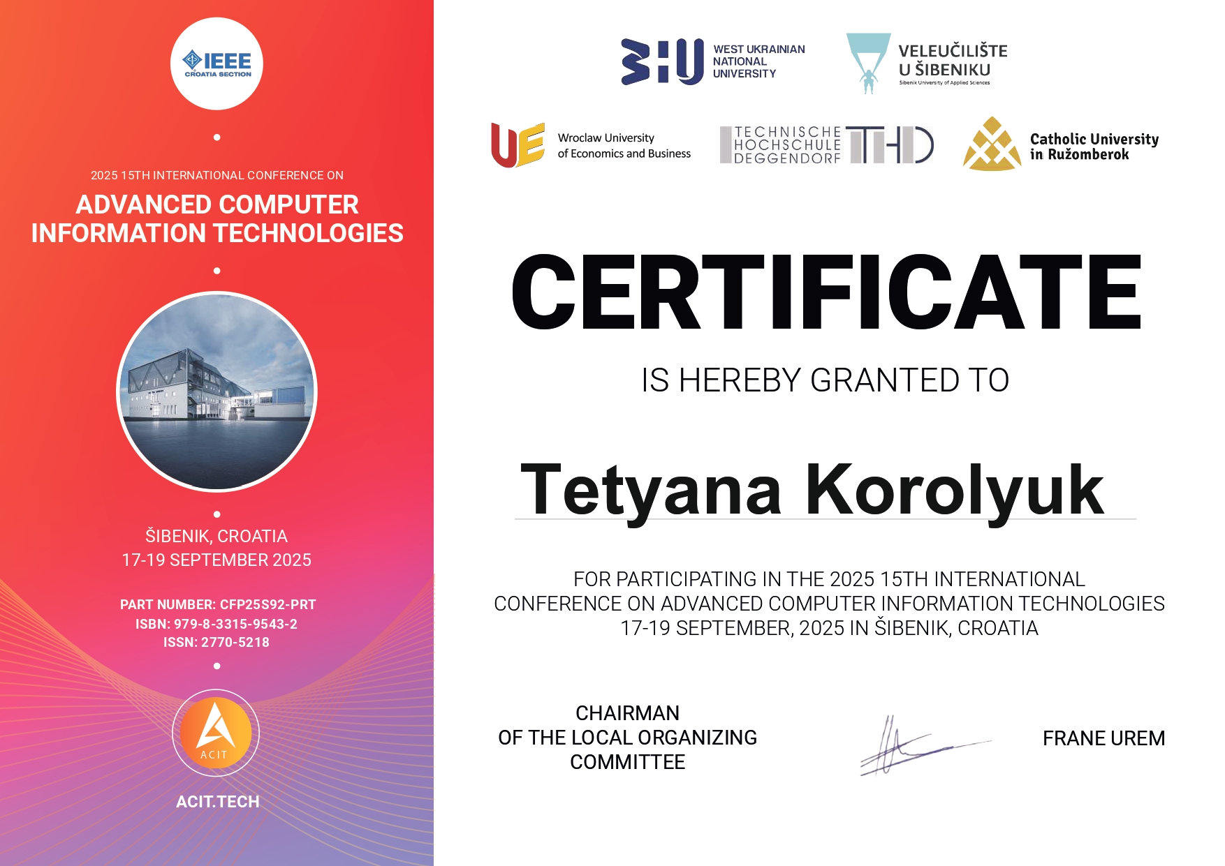 Construction of a Conceptual Model of the Accounting and Analytical System of Report Formation under IFRS. Spivak Serhii, Korolyuk Tetyana, Spivak I.,Krepych S, Nita B., Brukhanskyi R. 2023 13th International Conference on Advanced Computer Information Technologies, ACIT 2023 — Proceedings. Institute of Electrical and Electronics Engineers Inc. Wroclaw, Poland. с. 206-210. https://www.scopus.com/record/display.uri?eid=2-s2.0-85175536989&origin=resultslist&sort=plf-f&src=s&nlo=&nlr=&nls=&sid=a84d4364e9e8a8c805127dd9219dd36e&sot=aff&sdt=a&sl=67&s=AF-ID%28||Ternopil+Ivan+Puluj+National+Technical+University||+60013556%29&relpos=37&citeCnt=0&searchTerm=