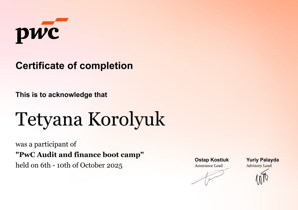 З 2026 року працюю старшим викладачем кафедри бухгалтерського обліку та аудиту ТНТУ.