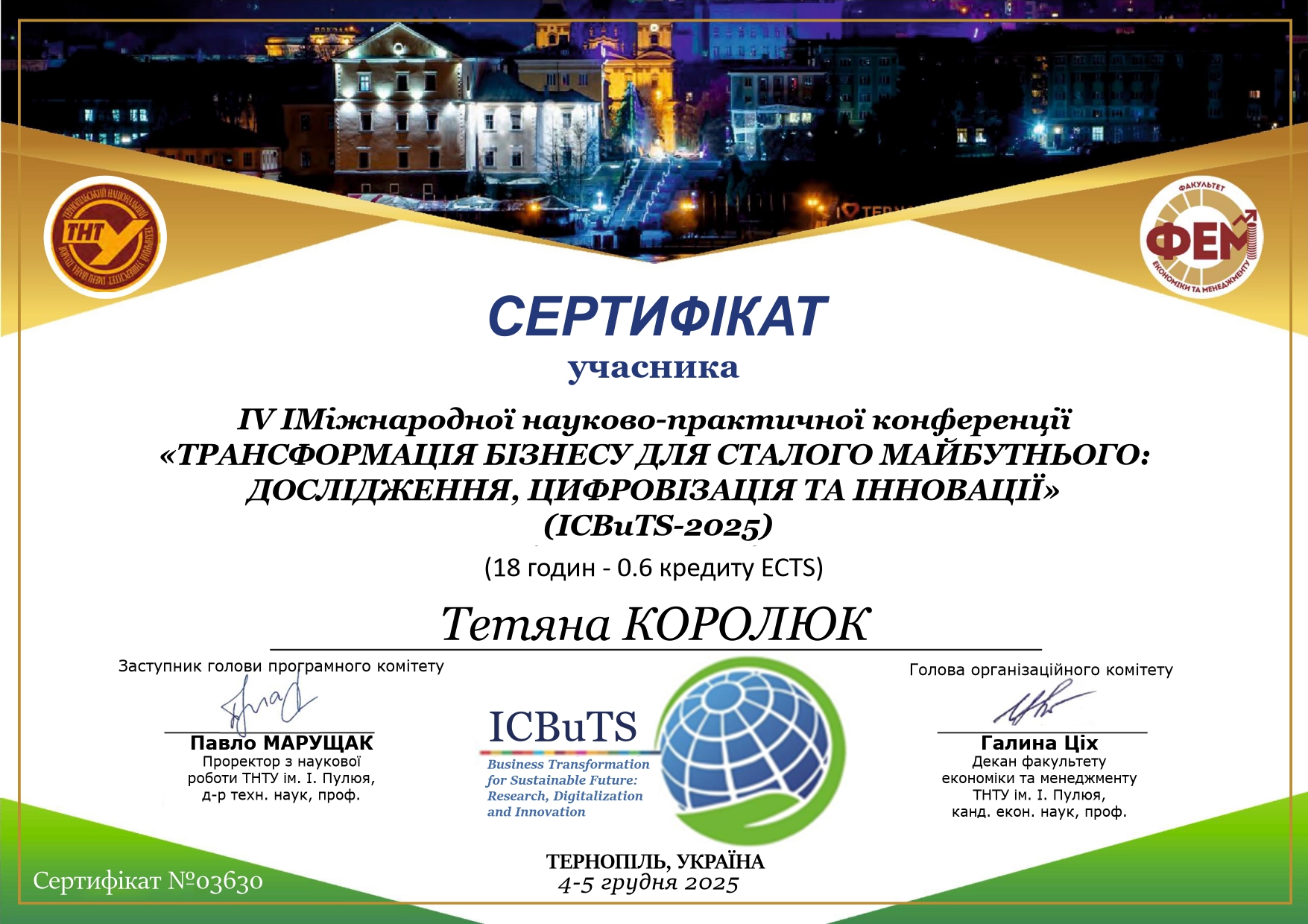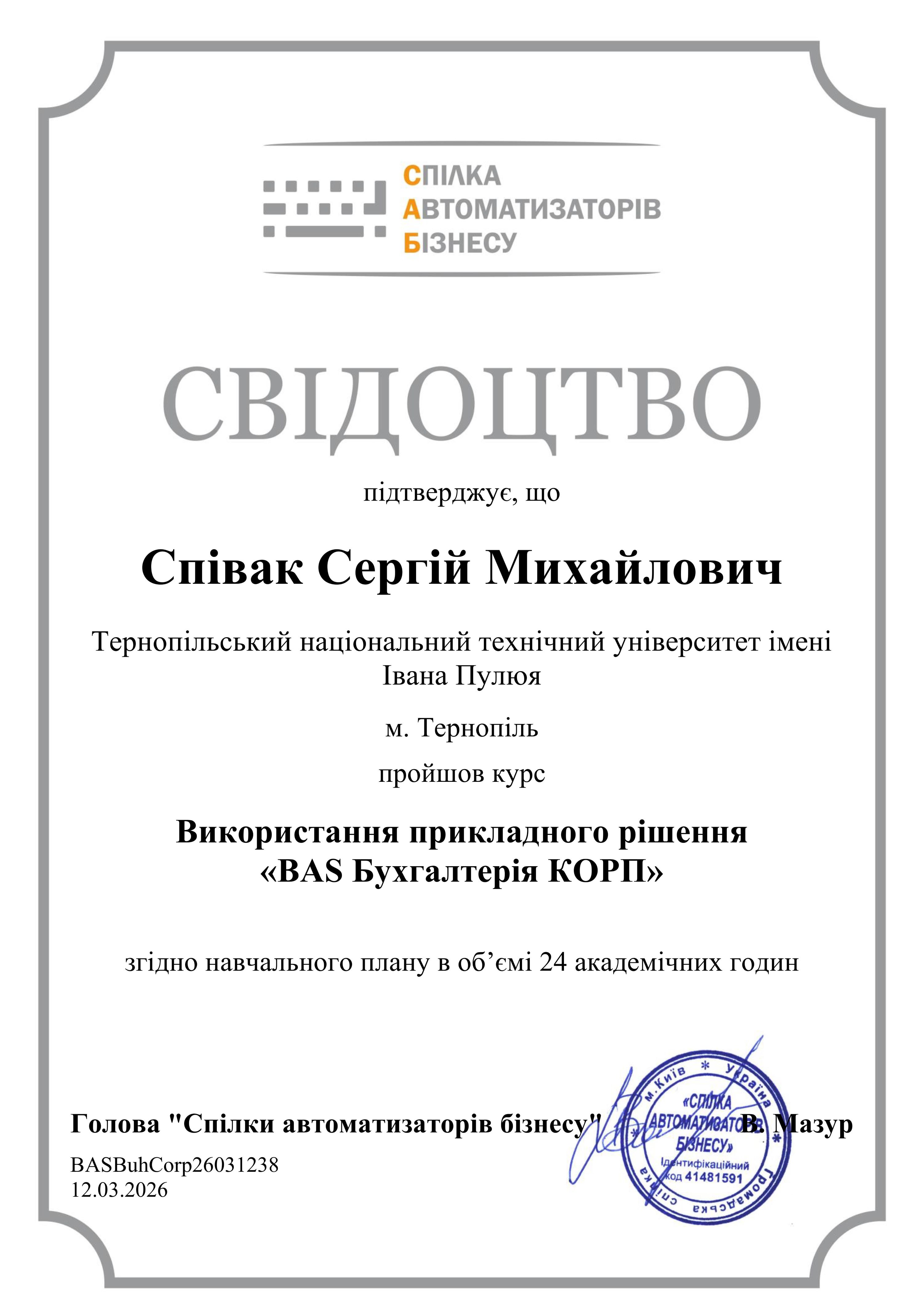 2022 – 2024 – докторант Тернопільського національного технічного університету імені Івана Пулюя.